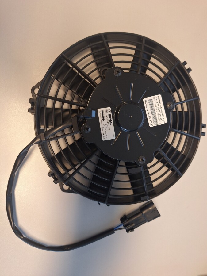 Spal fans 12V/24V that blow (indicated with an S) blow air from the grille towards the mounting side. A Spal fan 12V/24V that is suction (indicated with an A)