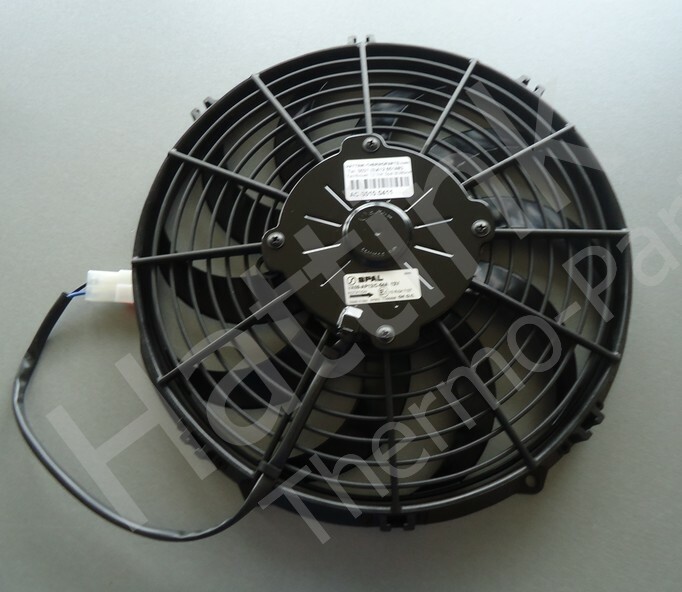 Spal fans 12V/24V that blow (indicated with an S) blow air from the grille towards the mounting side. A Spal fan 12V/24V that is suction (indicated with an A)